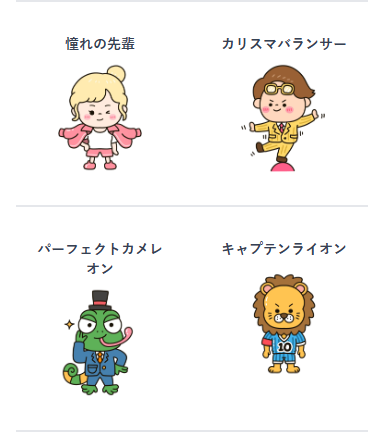 各タイプには、その特徴を象徴するキャラクター名が付けられています。